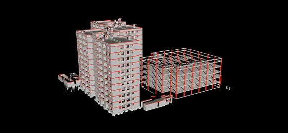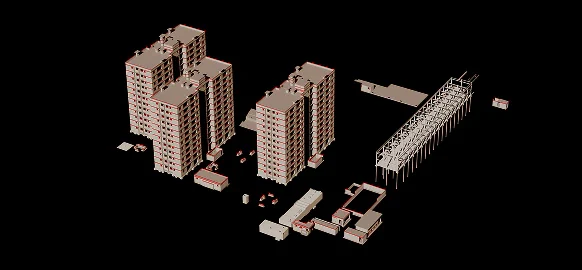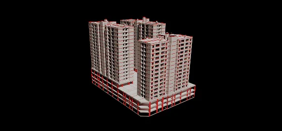 Condomínio composto por 3 torres de 12 pavimentos e anexos, aproximadamente 20.000 m² em alvenaria estrutural.